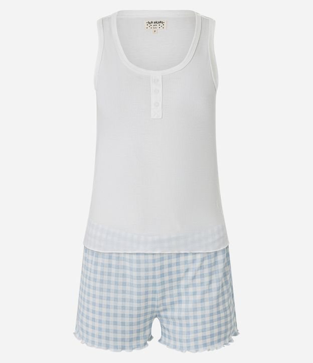 Pijama Short Doll em Ribana com Short Xadrez Vichy Branco