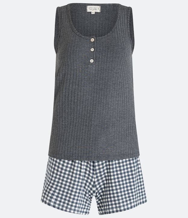 Pijama Short Doll em Viscose com Blusa Canelada e Short Xadrez