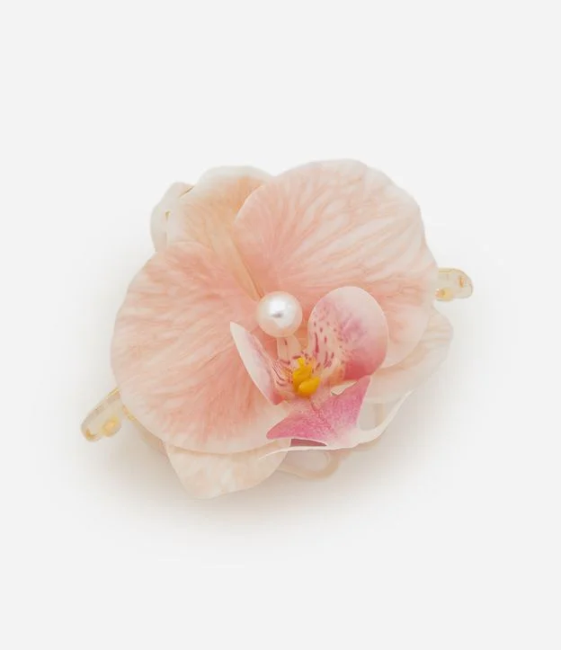 Piranha de Cabelo em Plástico com Formato de Flor Orquídea Rosa