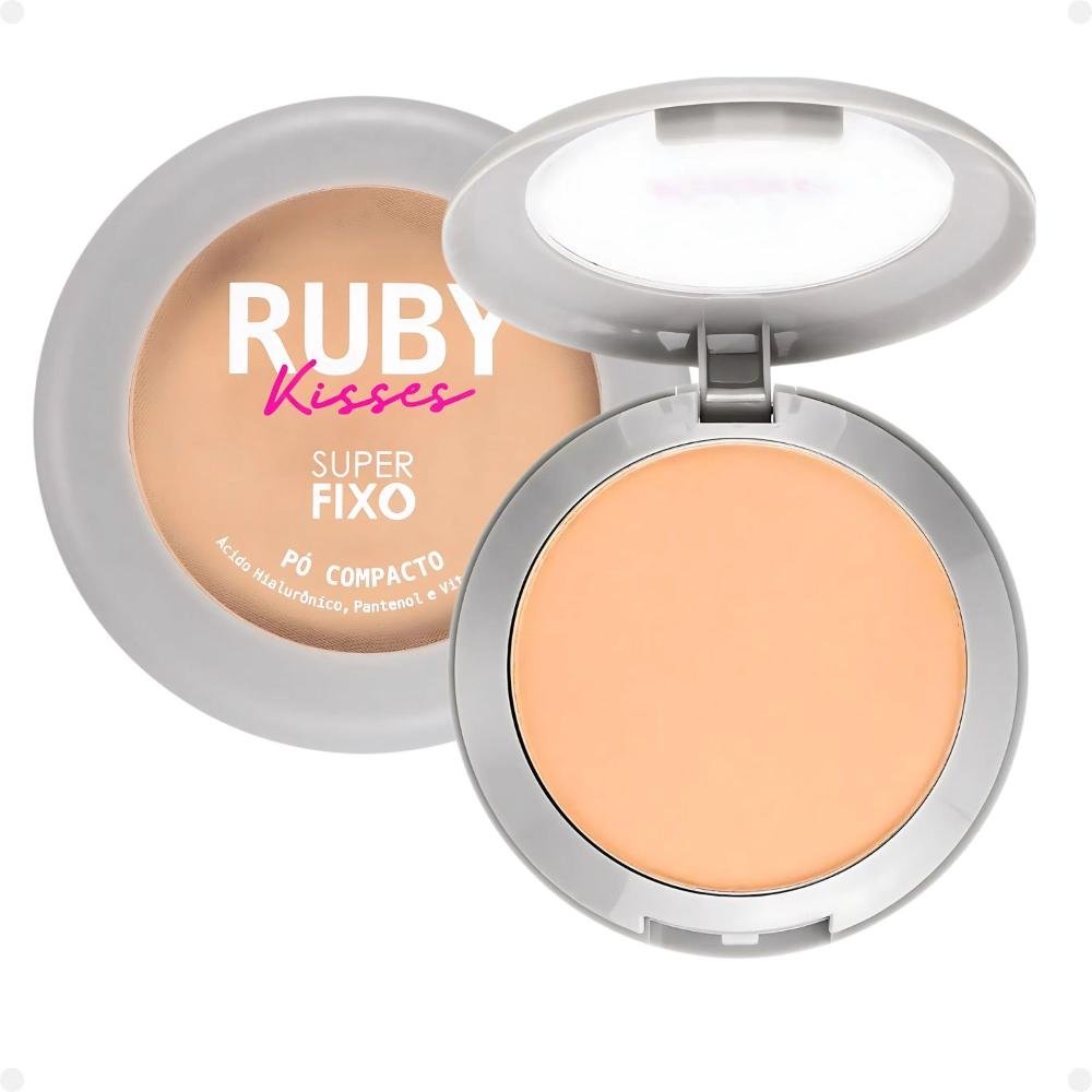 O Pó Compacto Super Fixo da Ruby Kisses é o produto ideal para proporcionar maior cobertura e durabilidade para a sua maquiagem. Sua nova fórmula contém Ácido Hialurônico, Pantenol e Vitamina E, que possuem ação antioxidante e hidratante. Quando o assunto é controlar o brilho e o excesso de oleosidade do rosto, esse pó compacto é o queridinho, pois sua textura ultra leve e fininha não esfarela e ainda garante um efeito matte aveludado. O produto evita aquele efeito “derretido” no visual já que sua fórmula duradoura adere super bem ao rosto. Além disso, a embalagem já acompanha espelho e uma esponja premium – o combo perfeito para você levar na bolsa e fazer retoques sempre que quiser!