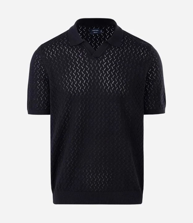Polo Manga Curta com Texturizado Zig Zag Preto