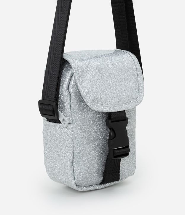 Porta Celular com Alça e Fechamento Envelope em Glitter Prata