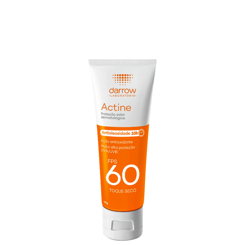 O Protetor Solar Actine FPS60 foi desenvolvido especialmente para peles brasileiras, com alta proteção UVA e UVB. Sua textura leve e de rápida absorção garante até 10H de antioleosidade, ideal para peles acneicas e oleosas. Possui ação antioxidante que auxilia no combate aos radicais livres, é hipoalergênico e com toque seco.