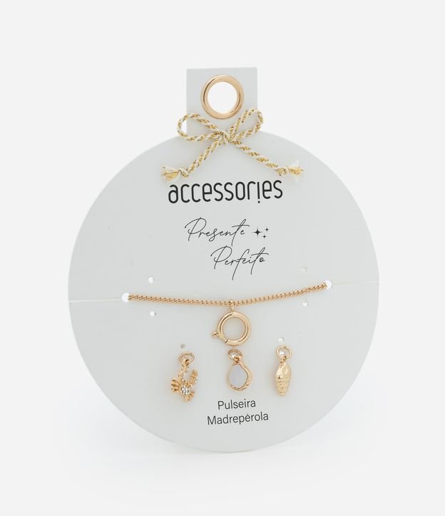 Pulseira Ajustável com Pingentes em Madrepérola Dourado