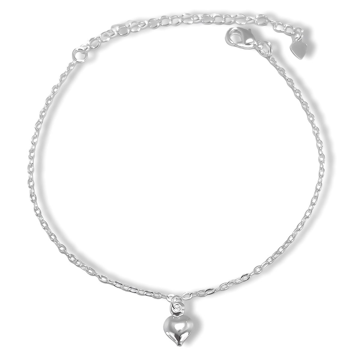 Pulseira  Corrente e Coracao Liso Banhada a Prata Semijoia