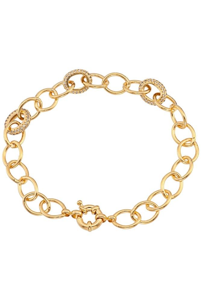 Pulseira Elos Lisos e Cravejados com Zircônias Folheado em Ouro 18K