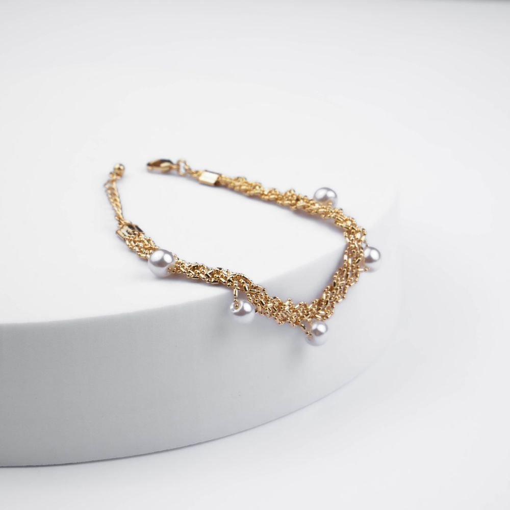 Pulseira Malha Rendada com Pérolas Semijoia Banhado a Ouro Ania Store
