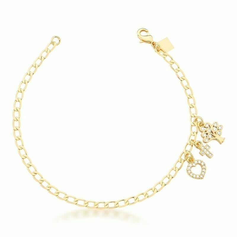 Pulseira Pingentes Coração, Cruz e Árvore da Vida Semijoia
