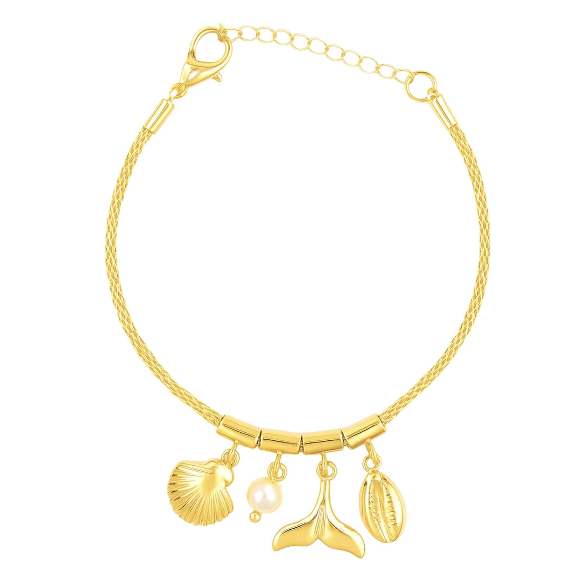 Pulseira Pingentes Moda Praia - Banhado em Prata 925 Dourado
