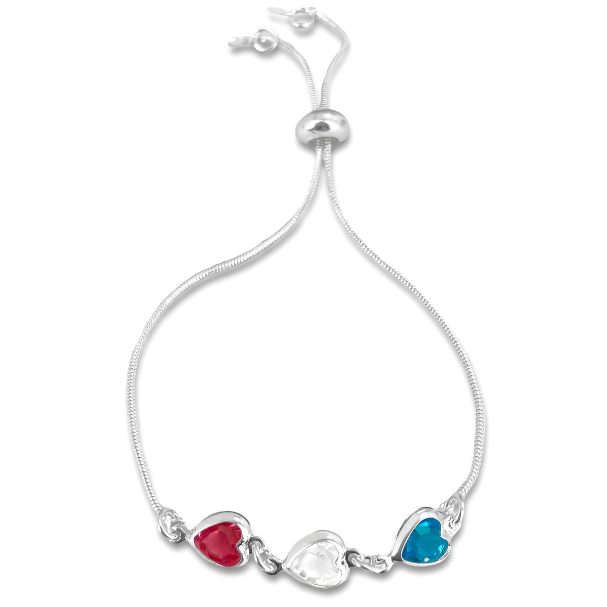 Pulseira Regulavel Coracao Cristal Colorido Banhada a Prata Prata