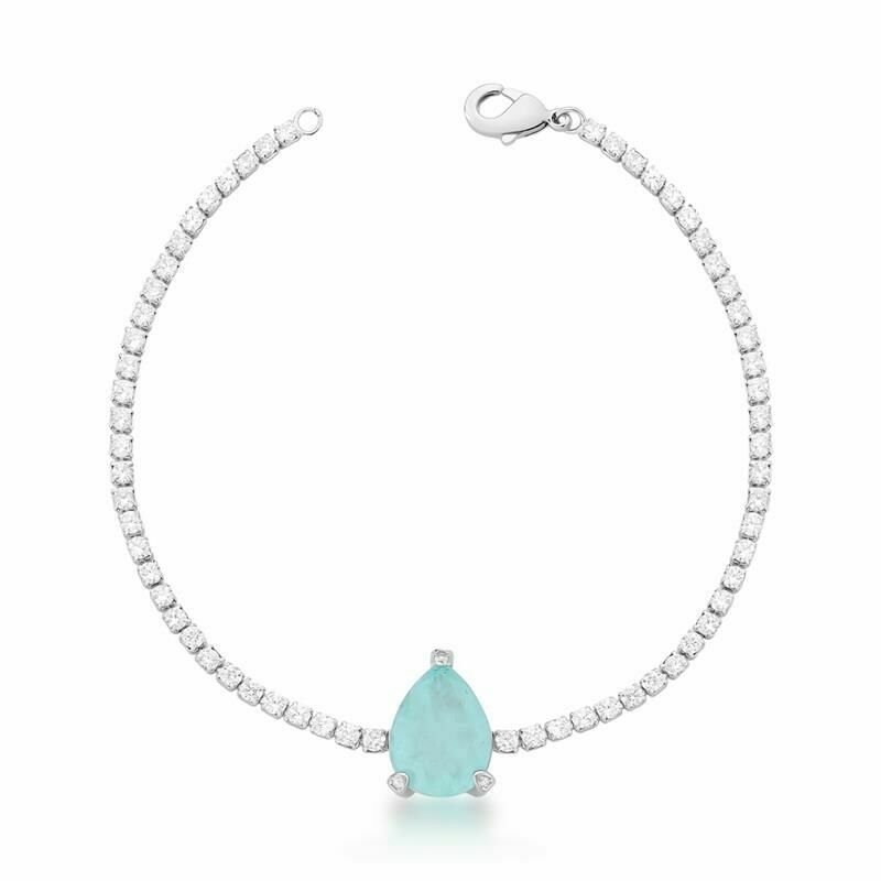 Pulseira Riviera Pedra Gota Água Marinha Semijoia Rodio