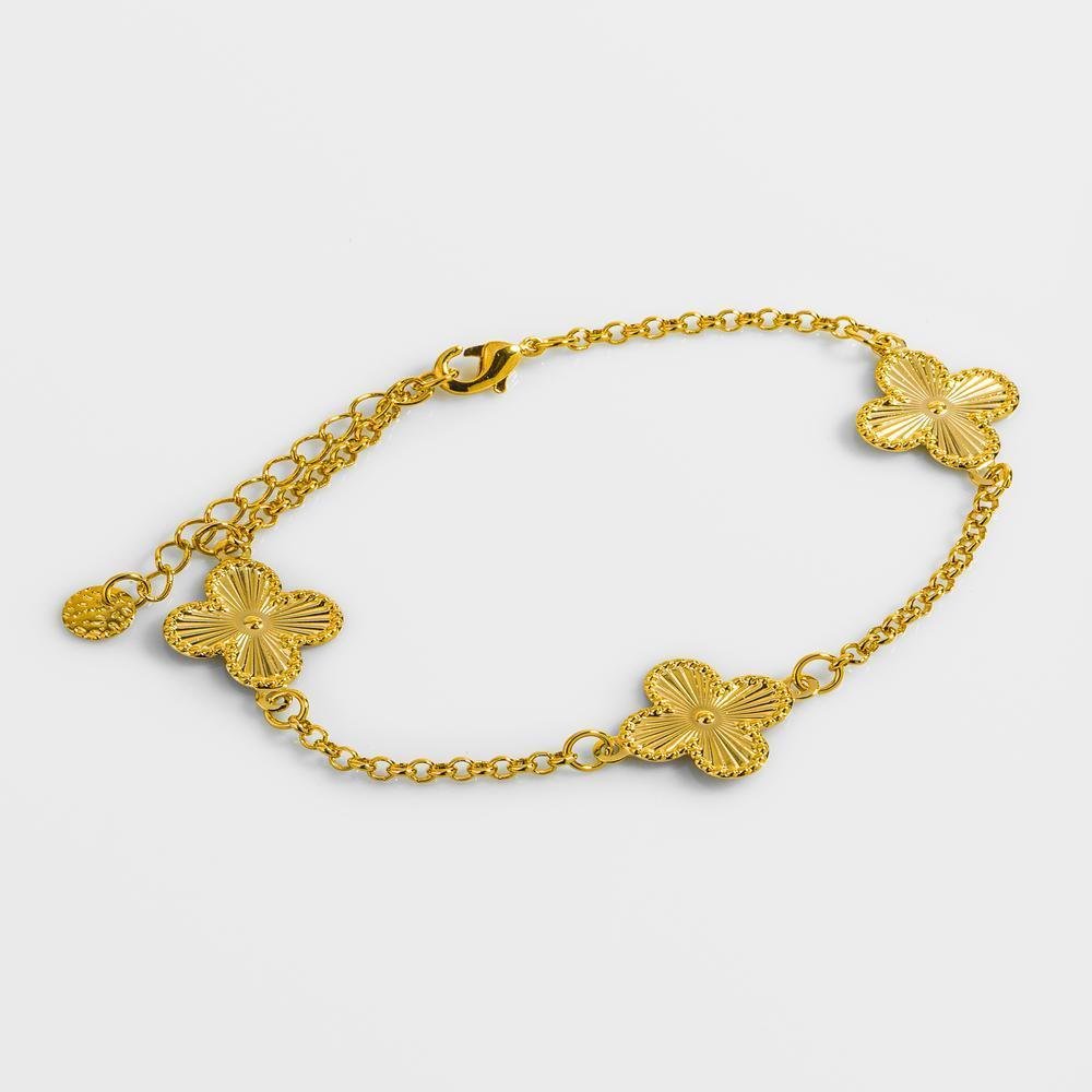 Pulseira Trevo Diamantado Boleado Elo Portugues Ouro