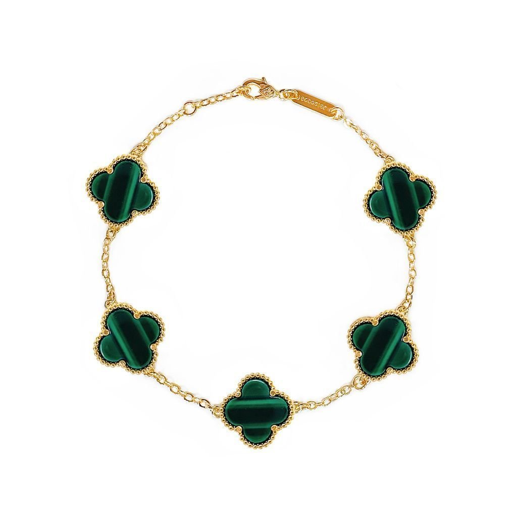 Pulseira Trevos Dupla Face Semijoia Verde Malaquita
