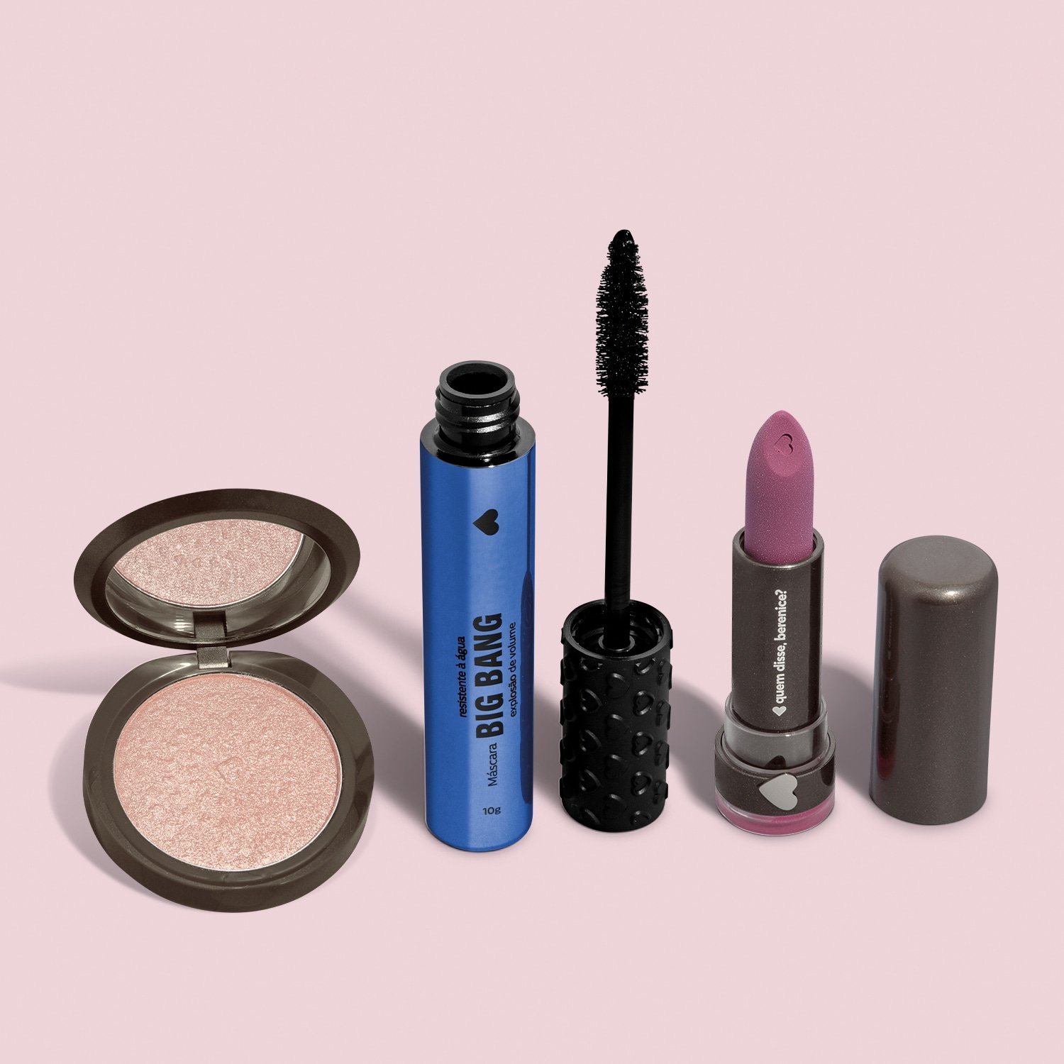 Quem disse, Berenice? Kit Iluminador Compacto Facial Roseluz 5g + Máscara Big Bang 10g + Batom Mate Alta Pigmentação Rosácia 3,8g