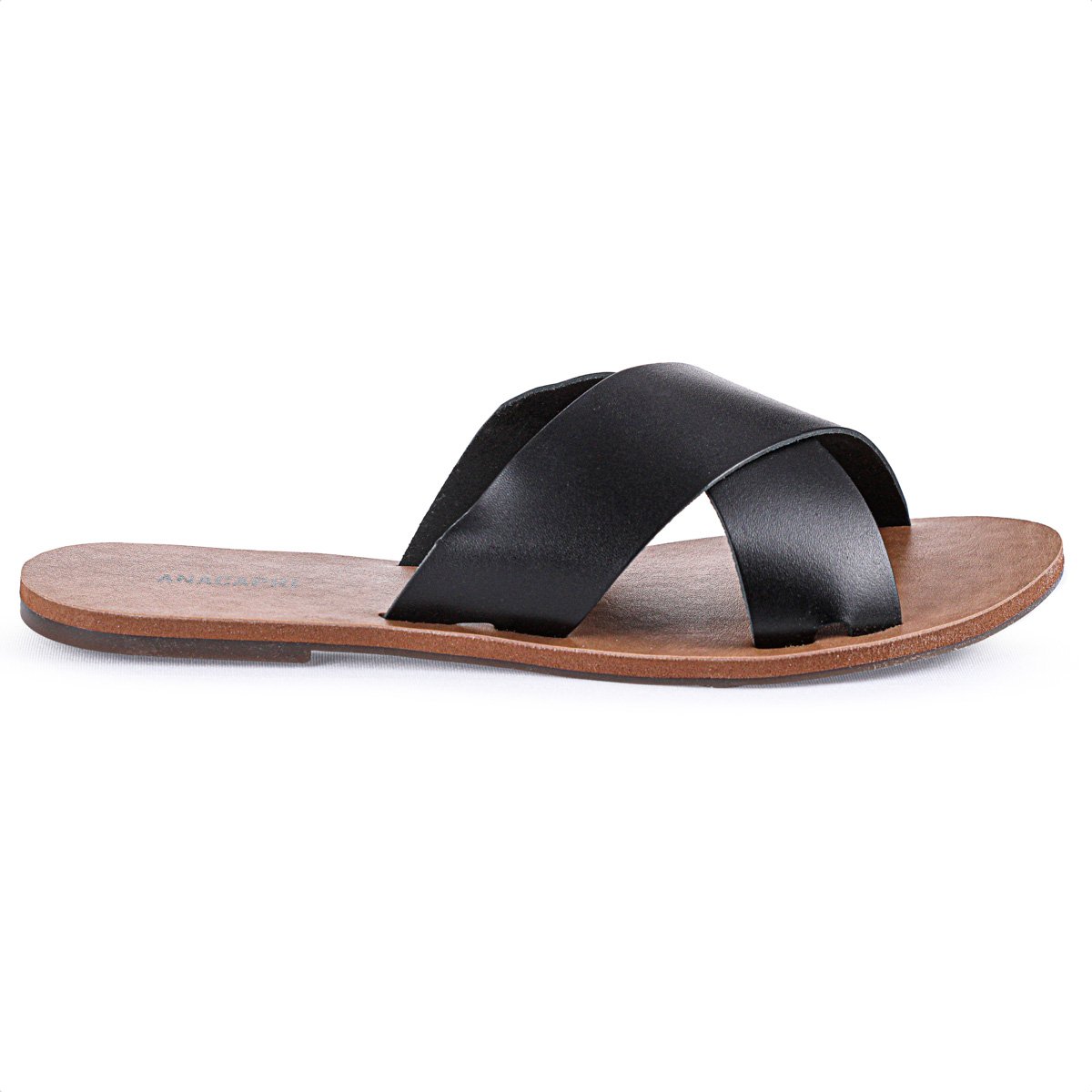 Rasteira Anacapri Couro Tiras Cruzadas Preto - Feminino