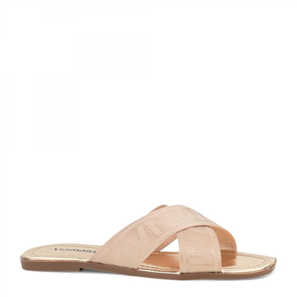 Rasteira Casual Tira Cruzada Via Marte Feminina Dourado