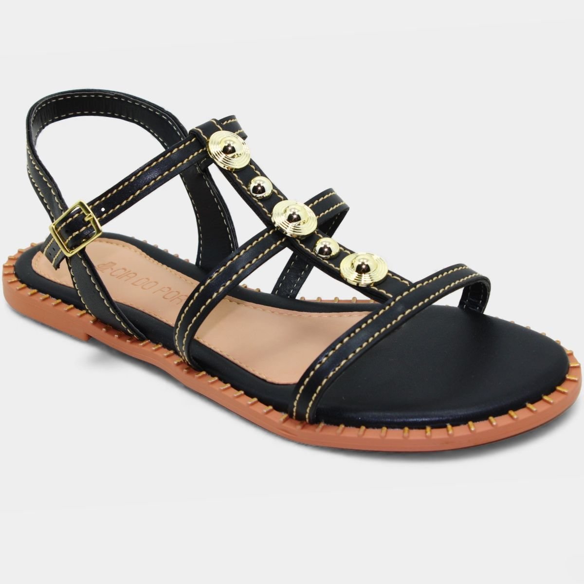 Rasteira Cia do Porto Apliques Feminina - Preto