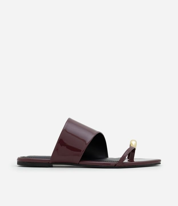 Rasteira em PU com Bico Folha e Dedeira Bordô