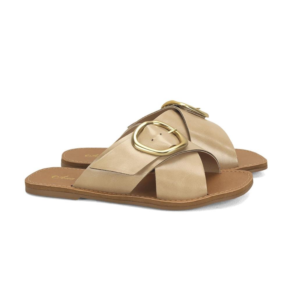 Rasteira em x com fivela napa nude