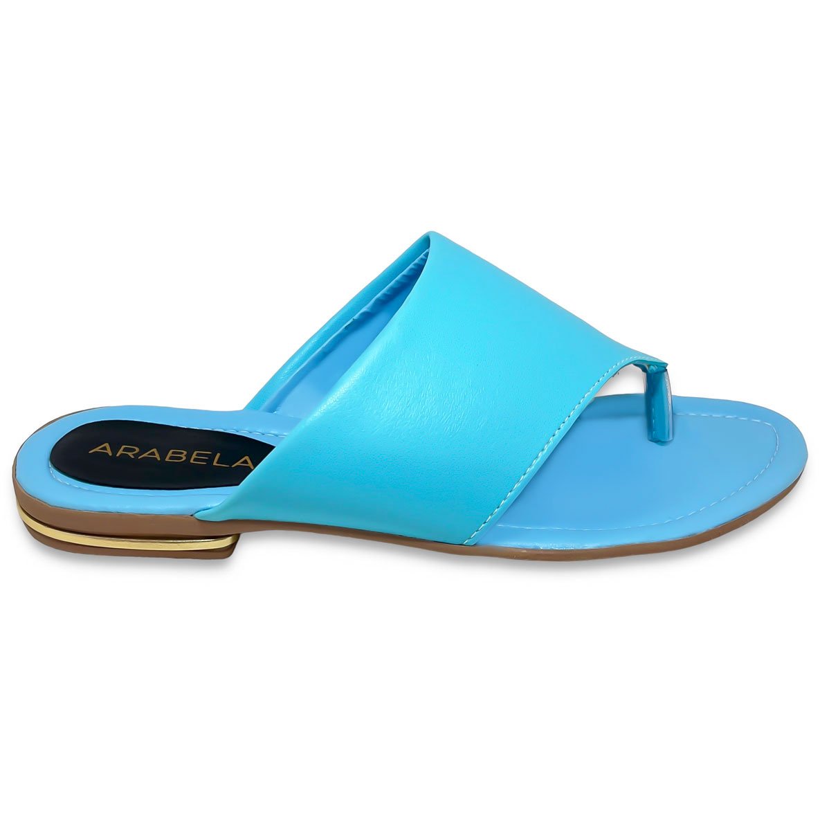 Rasteira Feminina Azul Tira Larga com Detalhe Dourado Azul