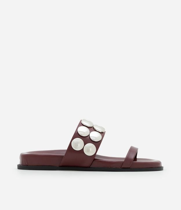 • Rasteira Mule em PU com Tiras e Aplicação de Tachas Bordô 1