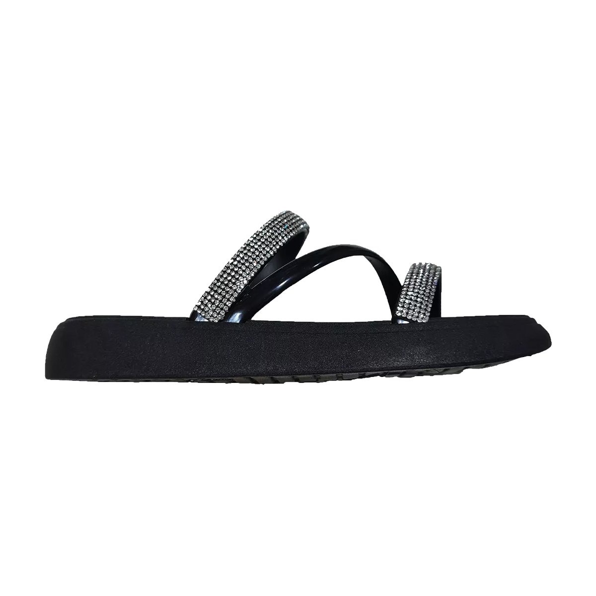 Rasteira Papete Tiras Strass Infantil Feminina Molekinha Preto