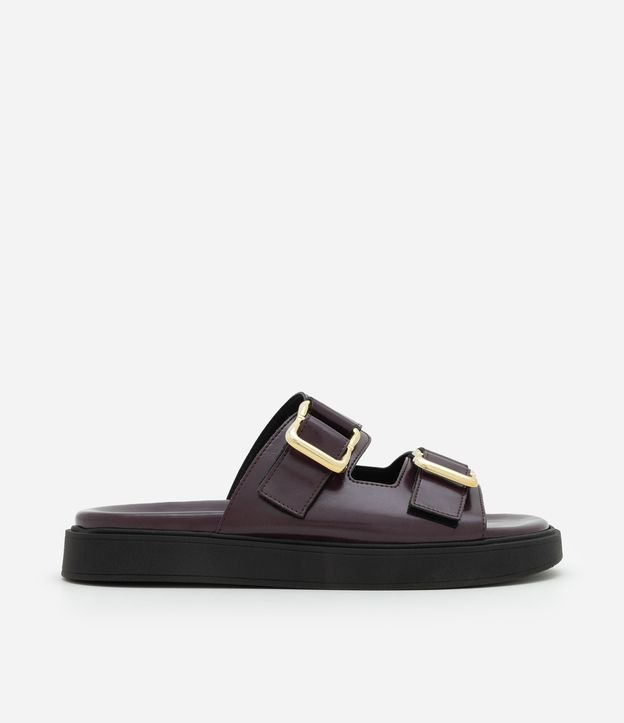 Rasteira Slide em PU com Tira Dupla e Fivela Vinho