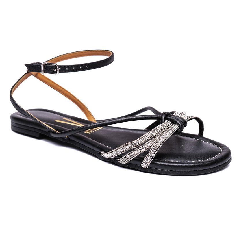 Rasteira Vizzano Multi Tiras Strass Feminina - Preto