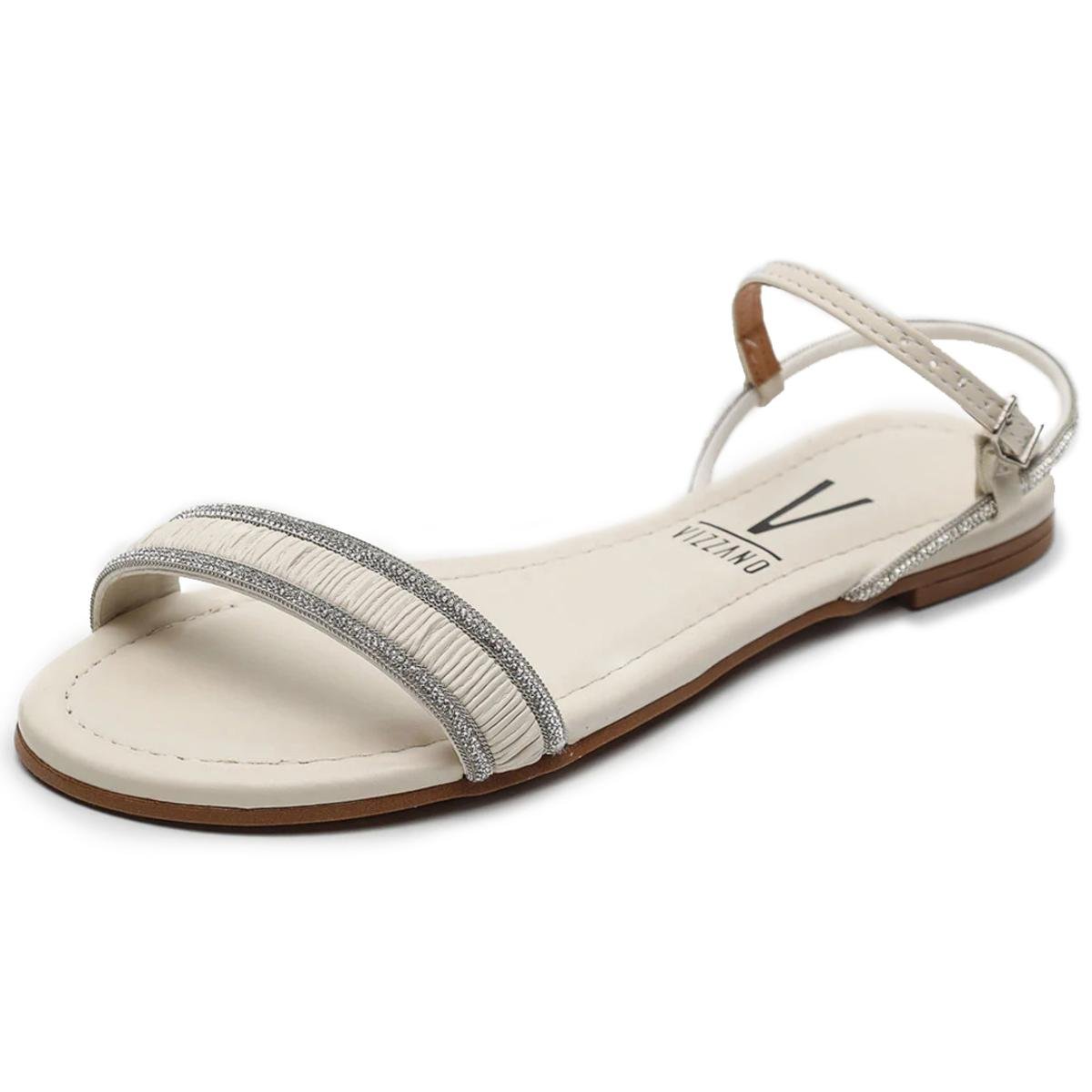 Rasteira Vizzano Tira Strass Florença Feminina - Branco Branco