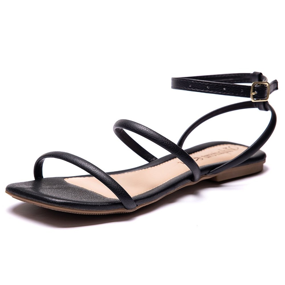 Rasteirinha Bico Quadrado Feminina Rasteira Basica Solado PVE Resistente Tiras Finas Palmilha EVA Preto