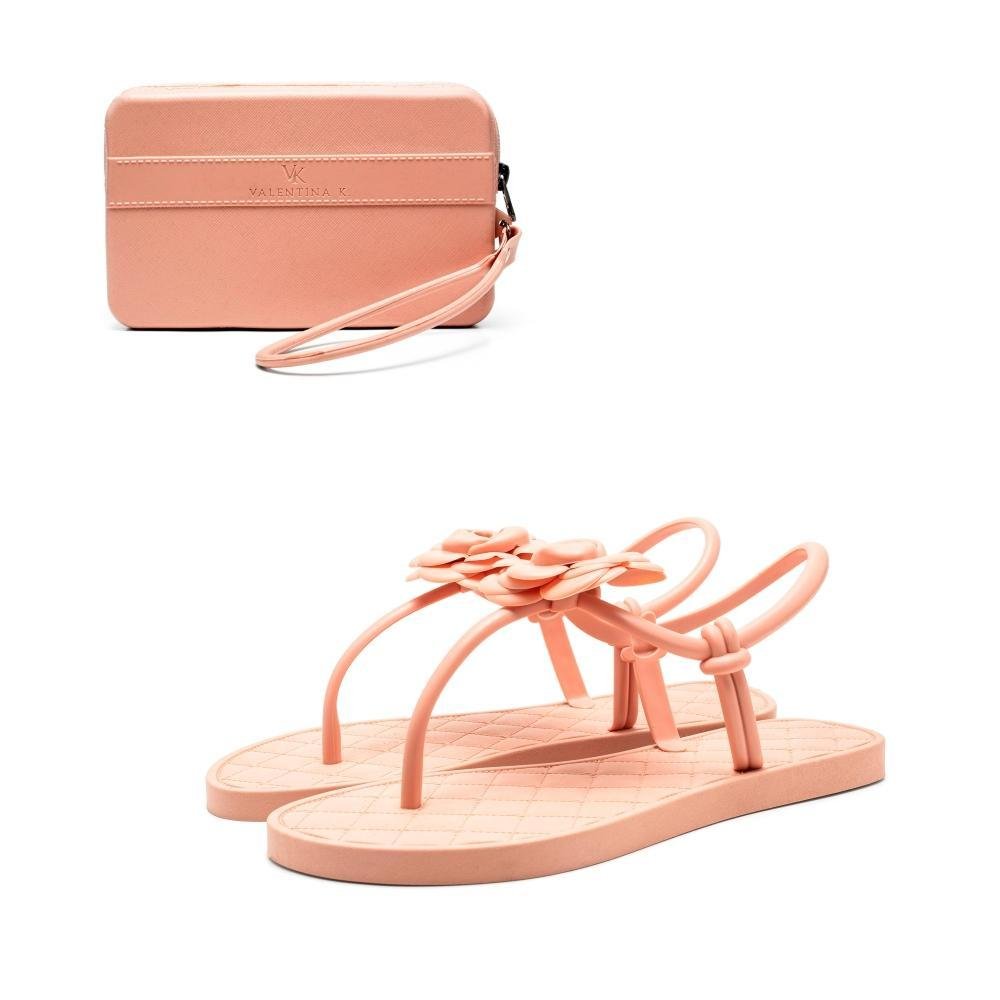 Rasteirinha Feminina Sandália Conforto Flor + Carteira Kit 2