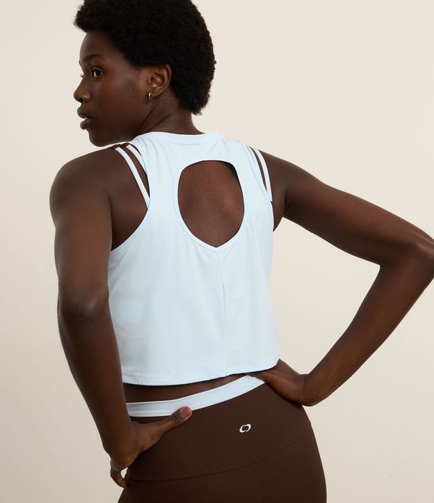 Regata Box Esportiva em Microfibra Texturizada com Recorte nas Costas Azul Claro