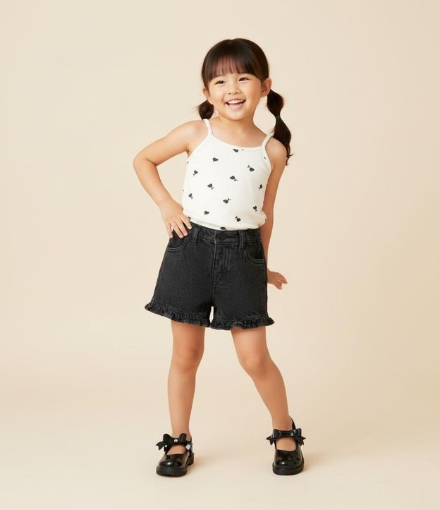 Regata Canelada com Estampa de Tulipas - Tam 1 a 6 anos Off White