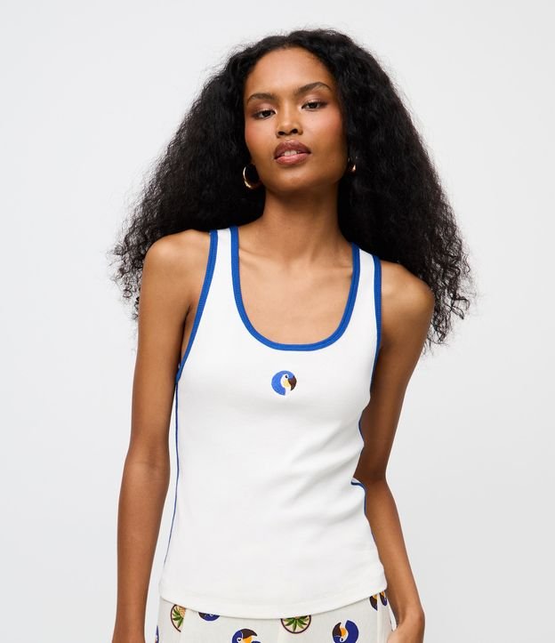 Regata com Bordado Tucano e Viés Contrastante Branco