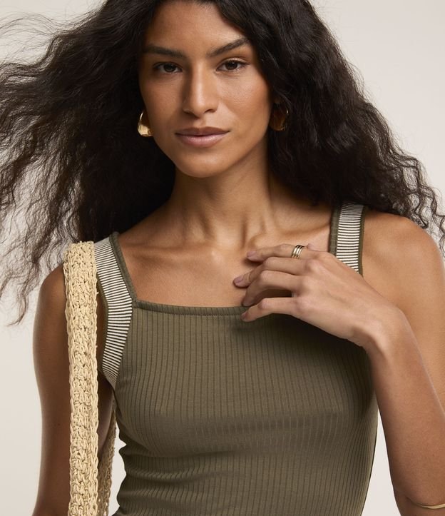 Regata com Decote Quadrado e Alça Contrastante Verde