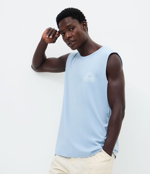 Regata em meia malha com modelagem comfort e estampa Environmental Custom & Goods. Possui frente minimalista e costas com desenho de sol, coqueiros e lettering. Peça leve e versátil para o dia a dia, confeccionado em algodão de certificado BCI para maior sustentabilidade.