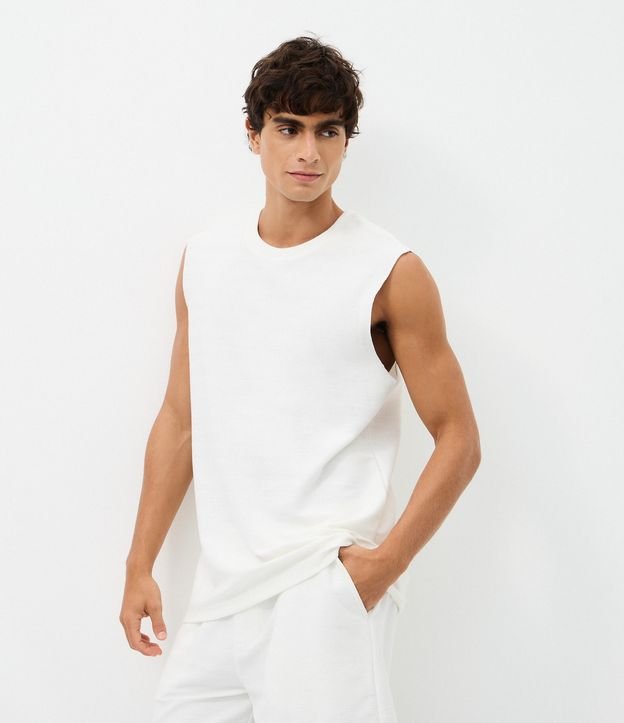 Regata masculina confeccionada em algodão mais sustentável e poliéster, no modelo comfort com gola redonda e textura.