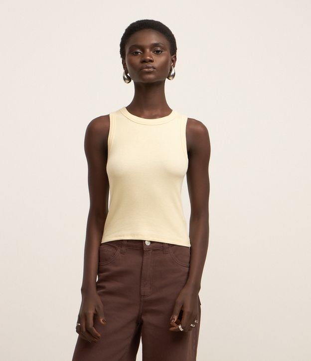 Regata Cropped Básica em Ribana Canelada Bege Creme