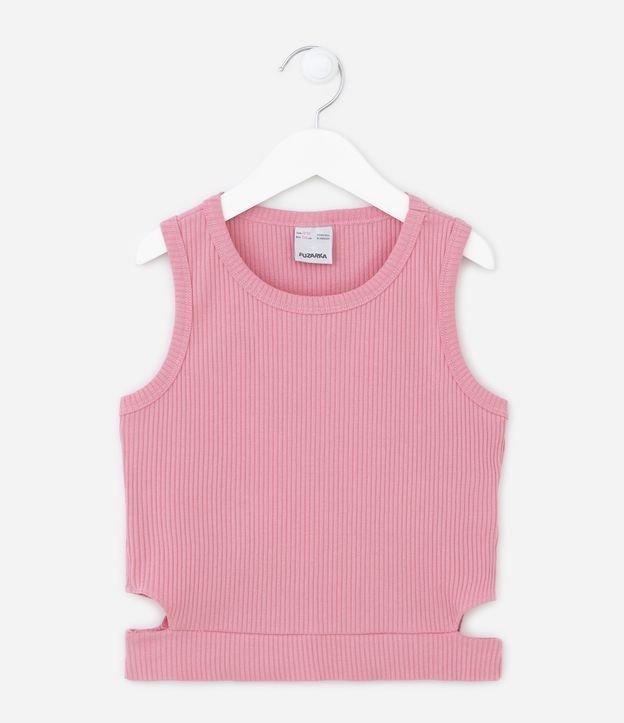 Regata Cropped Infantil Canelada com Recortes Laterais - Tam 5 a 14 anos Rosa