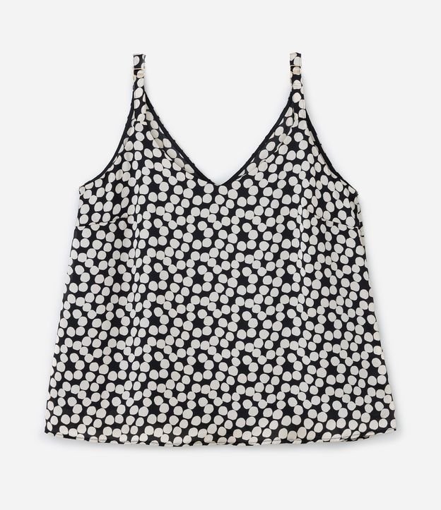 Regata em Crepe Acetinado Poá com Alça Larga Curve & Plus Size Preto/Branco