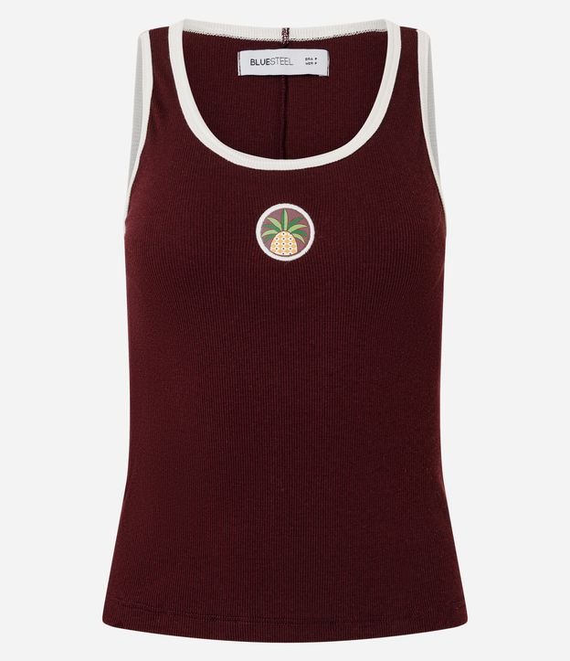 Regata em Ribana com Viés Contrastante e Bordado Abacaxi Bordô