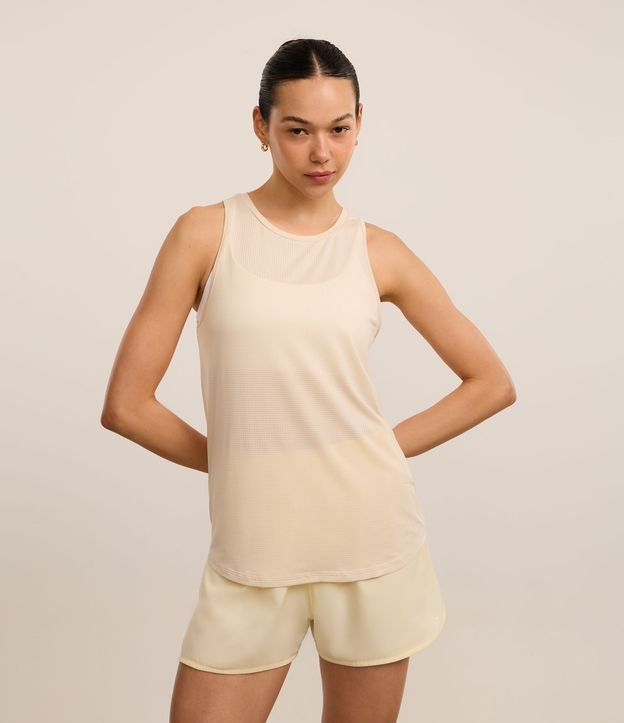 Regata Esportiva em Microfibra Texturizada e Barra Arredondada Bege