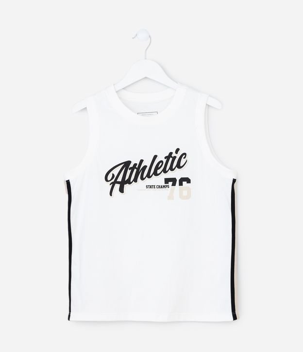 Regata Esportiva Infantil com Lettering Athletic - Tam 5 a 14 Anos Branco