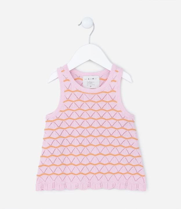 Regata Infantil com Efeito Crochê - Tam 1 a 5 Anos Rosa