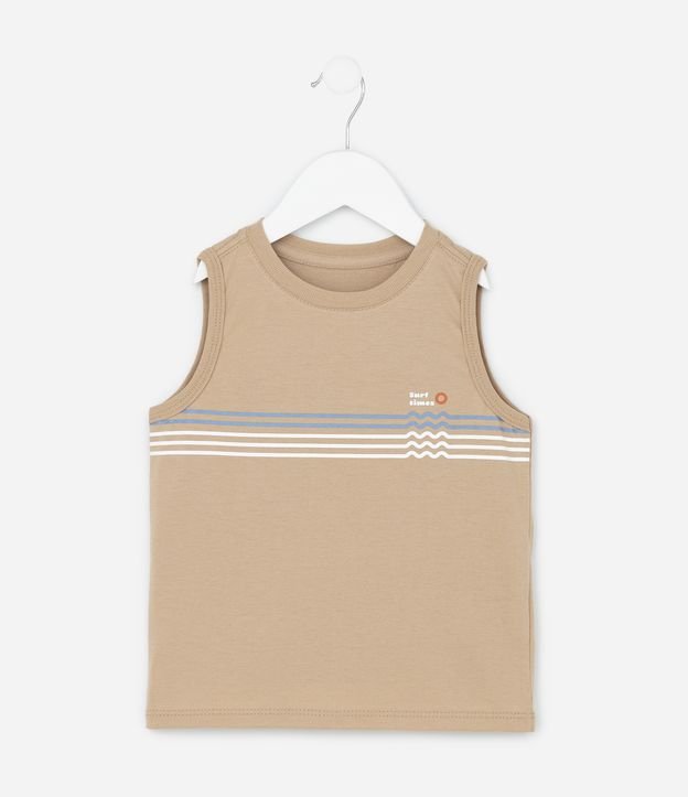 Regata Infantil com Estampa de Listras e Ondas - Tam 1 a 6 Anos Bege