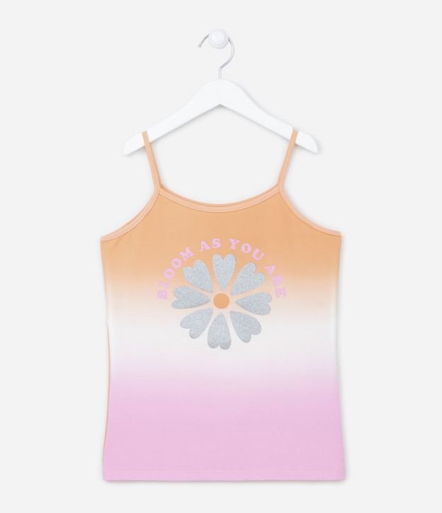 Regata Infantil com Estampa Dip Dye e Flor com Glitter - Tam 5 a 14 anos