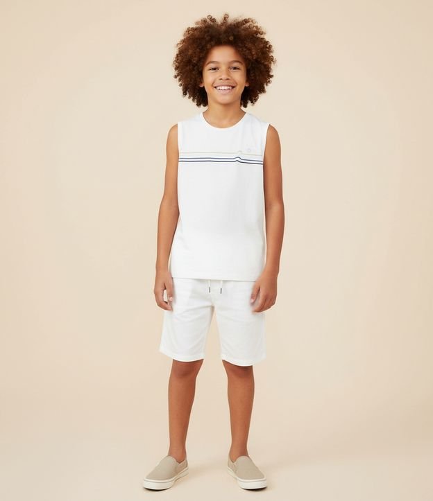 Regata Infantil com Estampa Listras - Tam 5 a 14 Anos Branco