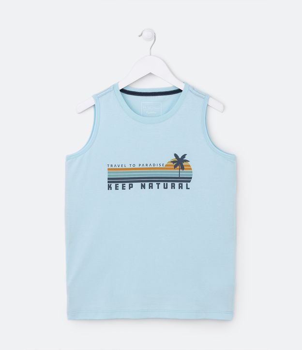 Regata Infantil com Estampa Localizada Listradinha com Palmeira - Tam 5 a 14 anos