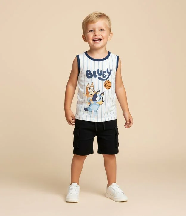 Regata Infantil de Basquete em Microfibra Bluey e Bingo - Tam 1 a 6 Anos Branco/Azul