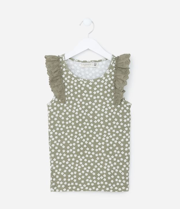 Regata Infantil em Ribana com Babado Broderie - Tam 5 a 14 Anos